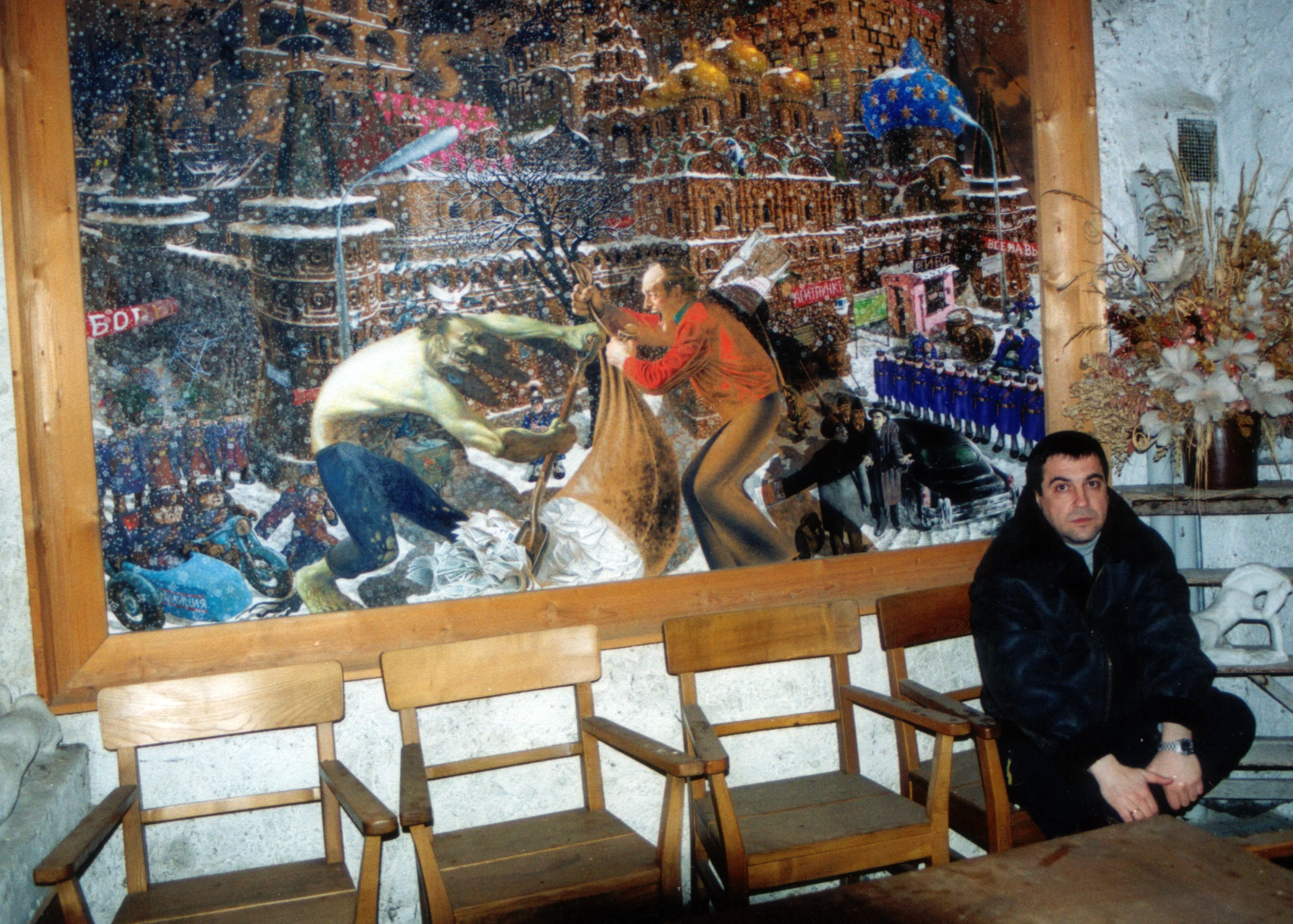 Andrei Zagdansky near Vasily Sitnikov’s magnum opus in a private house near Vienna. 2001